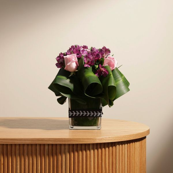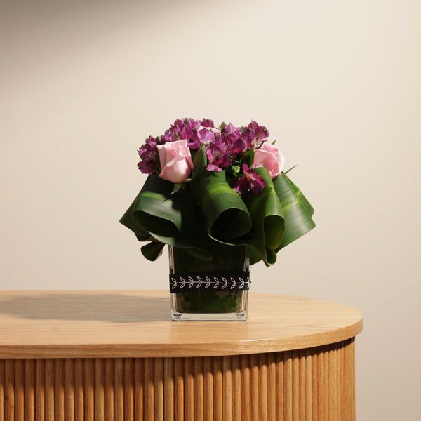 باقة من الجوري الوردية مع الألستروميريا البنفسجية في مزهرية زجاجية مربعة هي التعبير المثالي عن الرقي والجمال. هذه الباقة الساحرة تجمع بين رقة الجوري الوردية وأناقة الألستروميريا البنفسجية، مما يخلق تناغمًا بصريًا يلفت الأنظار ويضفي لمسة من الفخامة على أي مناسبة. مزهرية الزجاج المربعة تضيف لمسة من العصرية والجاذبية، لتصبح هذه الهدية الرائعة قطعة فنية تضفي أجواءً مميزة في أي مكان تُعرض فيه. سواء كنت تبحث عن هدية تعبر عن مشاعرك أو ترغب في تزيين منزلك بلمسة من الطبيعة، فإن هذه الباقة هي الخيار المثالي. اجعل مناسبتك الخاصة أكثر تميزًا واطلب الآن لتضفي لمسة من السحر والجمال على يومك.